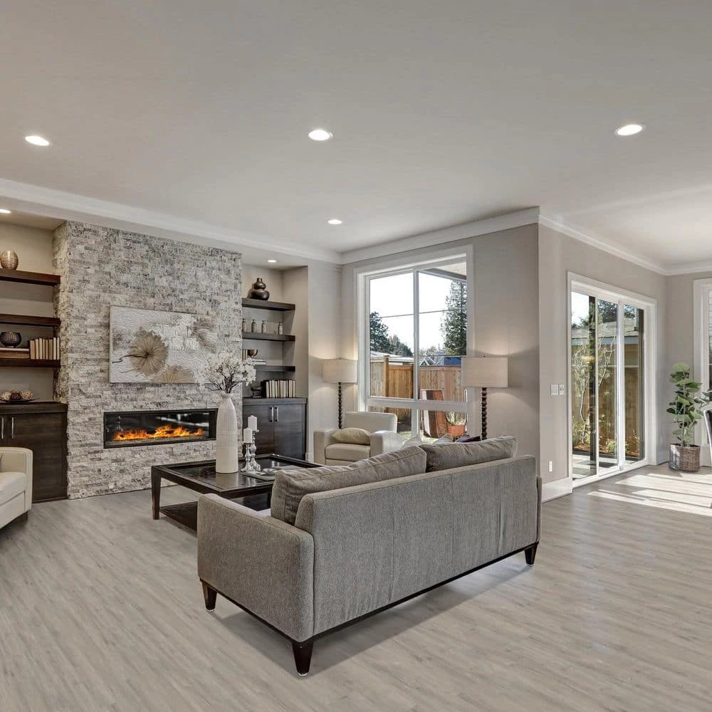 - Moonstone color finish offers the authentic look of real wood in this rigid core luxury flooring
