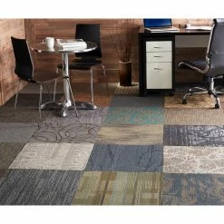 Cool gray medium pile texture indoor carpet with cool accents